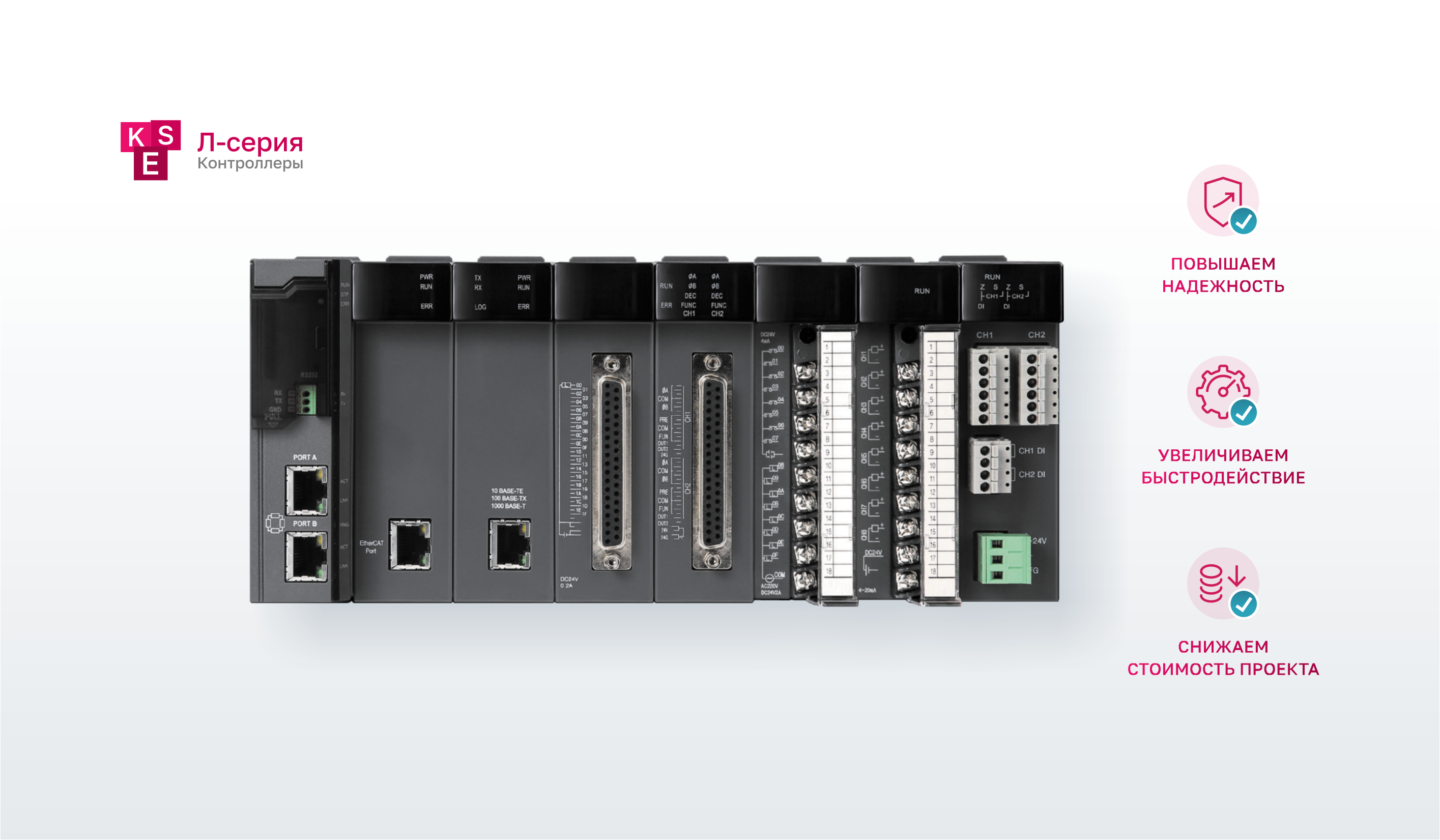 Разработаны для автоматизации средних и крупных производственных процессов, в том числе с функцией обеспечения аппаратного резервирования модулей центральных процессоров, питания, интерфейсов связи и каналов ввода/вывода.